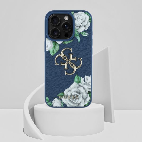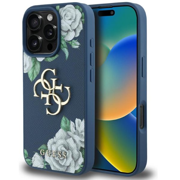 Etui Guess Grained Roses Big 4G logo do Apple iPhone 16 Pro niebieski
