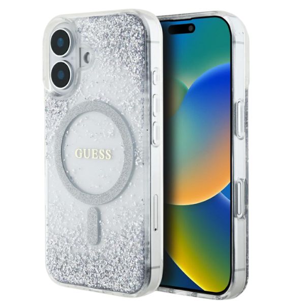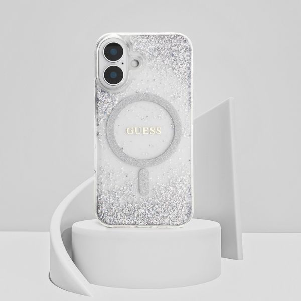 Etui Guess HC Resin Bottom Glitter do Apple iPhone 16 MagSafe srebrny