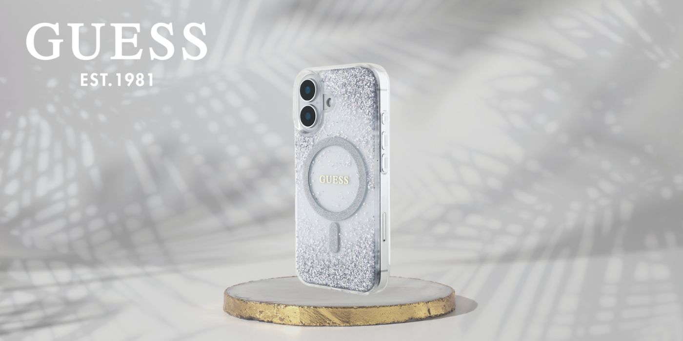 W centralnej części etui znajduje się logo Guess oraz brokatowy pierścień MagSafe, które subtelnie podkreślają prestiż tego etui.