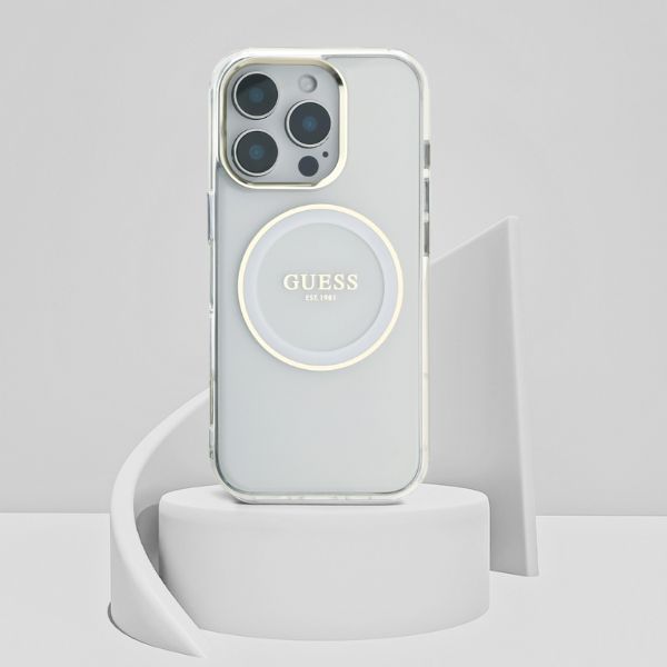 Etui Guess IML Metal Colored Circle Classic Logo MagSafe do Apple iPhone 16 Pro Max biały