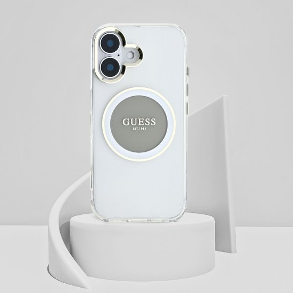 Etui Guess IML Metal Colored Circle Classic Logo MagSafe do Apple iPhone 16 szary