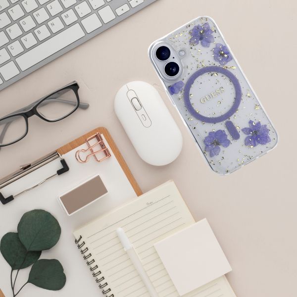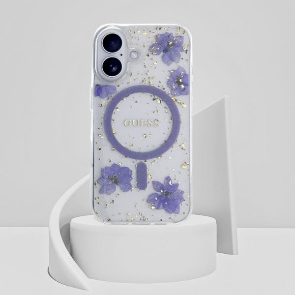 Etui Guess Resin Flowers Glitter MagSafe do Apple iPhone 16 fioletowy