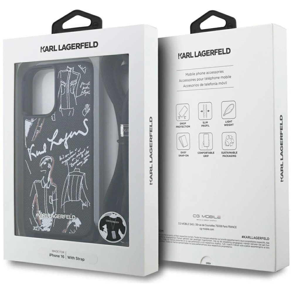 Etui Karl Lagerfeld Crossbody Grained Pattern & Logo do Apple iPhone 16 czarny
