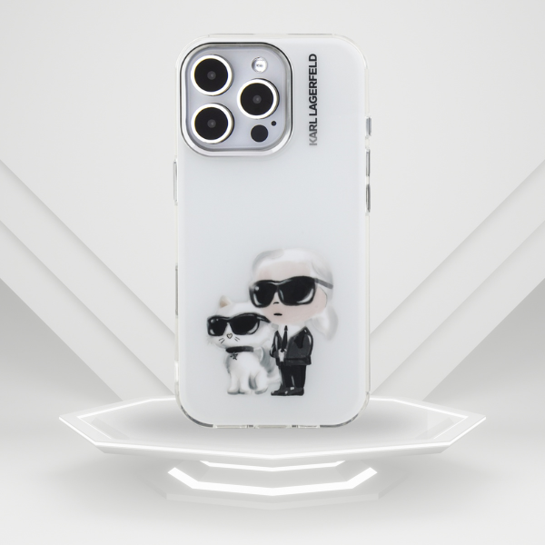 Etui Karl Lagerfeld IML Aquarelle Karl & Choupette & Logo do Apple iPhone 16 Pro biały