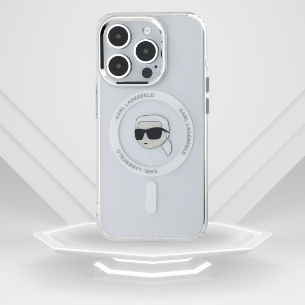 Etui Karl Lagerfeld IML Metal Karl Head MagSafe do Apple iPhone 15 Pro Max biały
