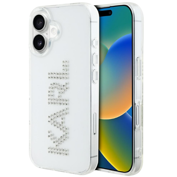 Etui Karl Lagerfeld IML Rhinestones Logo do Apple iPhone 16 przezroczysty