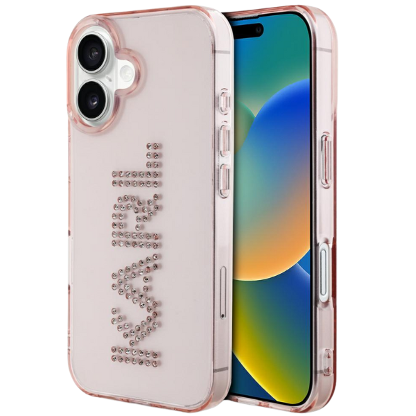 Etui Karl Lagerfeld IML Rhinestones Logo do Apple iPhone 16 różowy