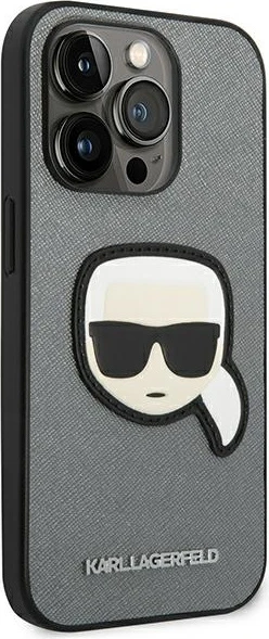 Etui Karl Lagerfeld KLHCP14LSAPKHG Apple iPhone 14 Pro srebrny/silver hardcase Saffiano Karl`s Head Patch
