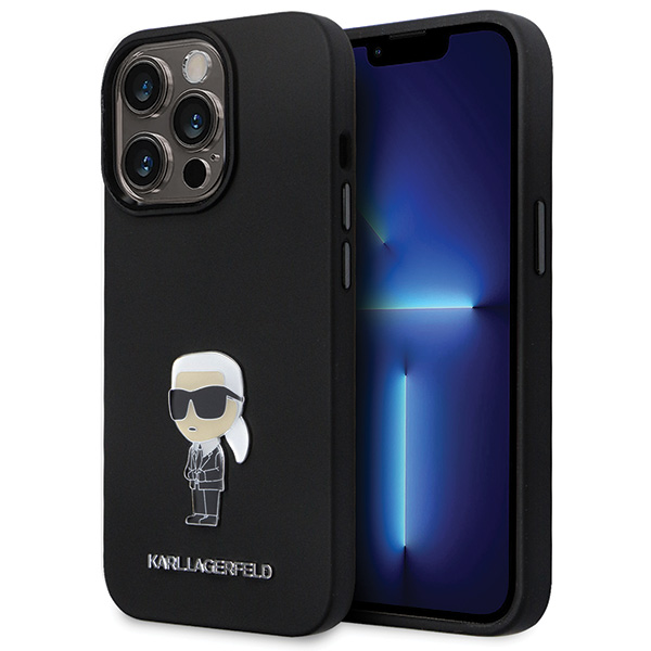 Etui Karl Lagerfeld KLHCP14LSMHKNPK iPhone 14 Pro Silicone Ikonik Metal Pin czarny/black