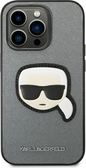 Etui Karl Lagerfeld KLHCP14XSAPKHG Apple iPhone 14 Pro Max srebrny/silver hardcase Saffiano Karl`s Head Patch