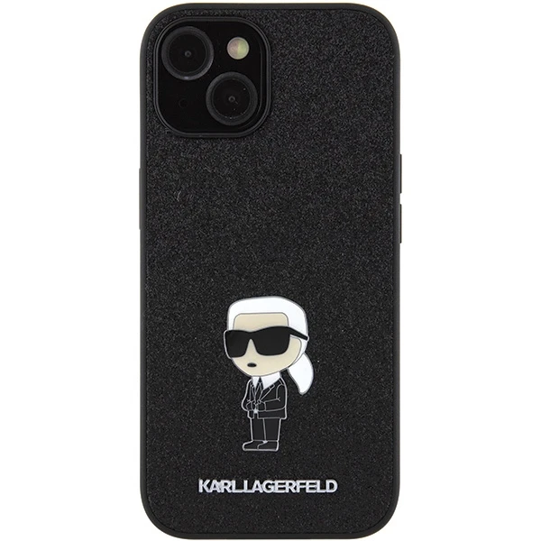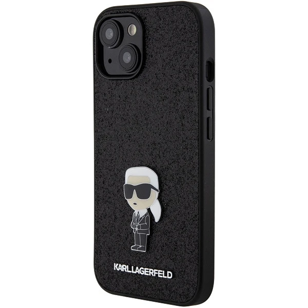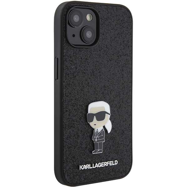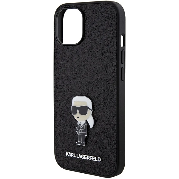 Etui Karl Lagerfeld KLHCP15SGKNPSK Apple iPhone 15 hardcase Fixed Glitter Ikonik Logo Metal Pin czarny/black