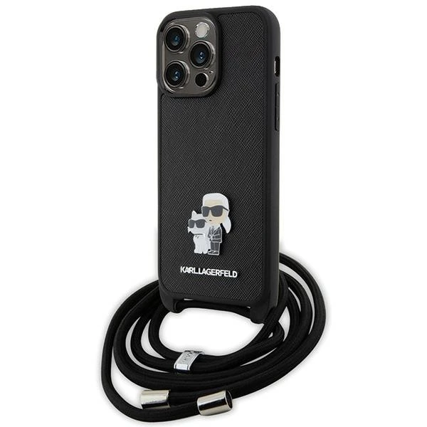 Etui Karl Lagerfeld KLHCP15XSAKCPSK Apple iPhone 15 Pro Max hardcase Crossbody Saffiano Metal Pin Karl & Choupette czarny/black