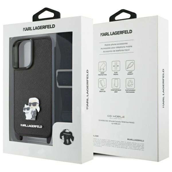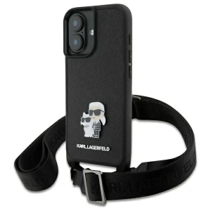 Etui Karl Lagerfeld KLHCP16SSAKCPBK Apple iPhone 16 hardcase Saffiano Karl&Choupette Metal Pin CBDY Strap czarny/black