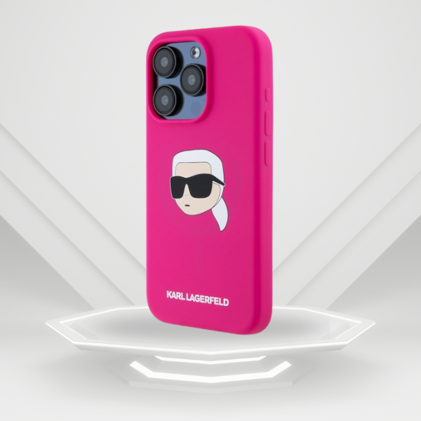 Etui Karl Lagerfeld KLHMP15LSKHPPLF Apple iPhone 15 Pro hardcase Silicone Karl Head Print MagSafe fuksja/fuschia