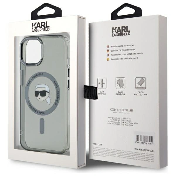 Etui Karl Lagerfeld KLHMP15SHLSKIK Apple iPhone 15 hardcase IML Metal Karl Head MagSafe czarny/black