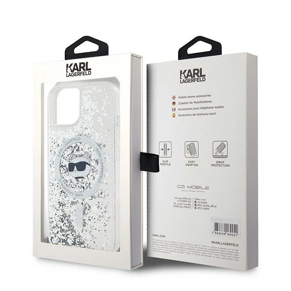 Etui Karl Lagerfeld KLHMP15SLGCHSGH Apple iPhone 15 / 14 / 13 hardcase Liquid Glitter Choupette Head Magsafe transparent