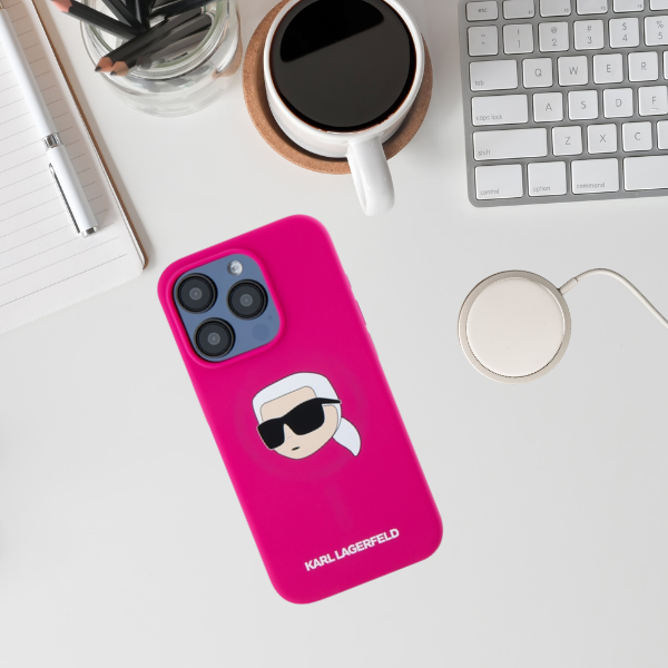 Etui Karl Lagerfeld KLHMP15SSKHPPLF Apple iPhone 15 hardcase Silicone Karl Head Print MagSafe fuksja/fuschia