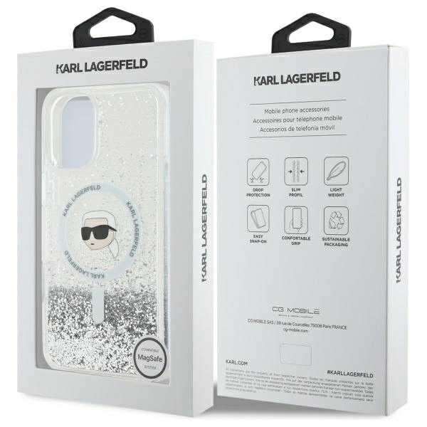Etui Karl Lagerfeld KLHMP16SLGKISGH Apple iPhone 16 hardcase Liquid Glitter Karl Head MagSafe transparent