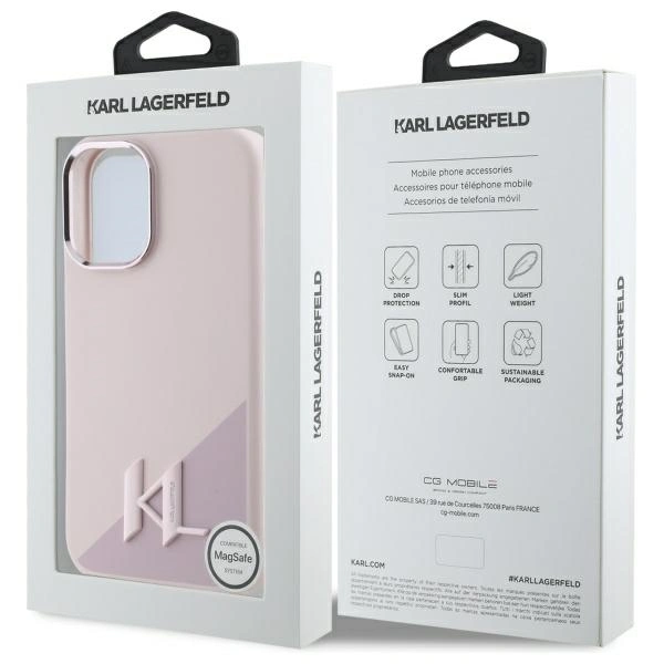 Etui Karl Lagerfeld KLHMP16SSCMKMPCP Apple iPhone 16 hardcase Silicone Shadow Metal Initial MagSafe różowy/pink