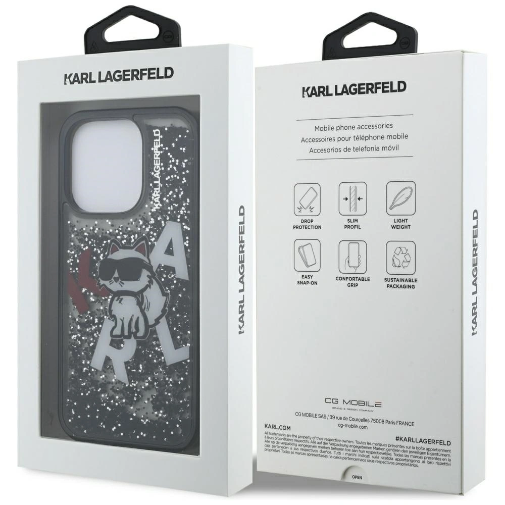 Etui Karl Lagerfeld Liquid Glitter Choupette Logo do Apple iPhone 16 Pro Max czarny