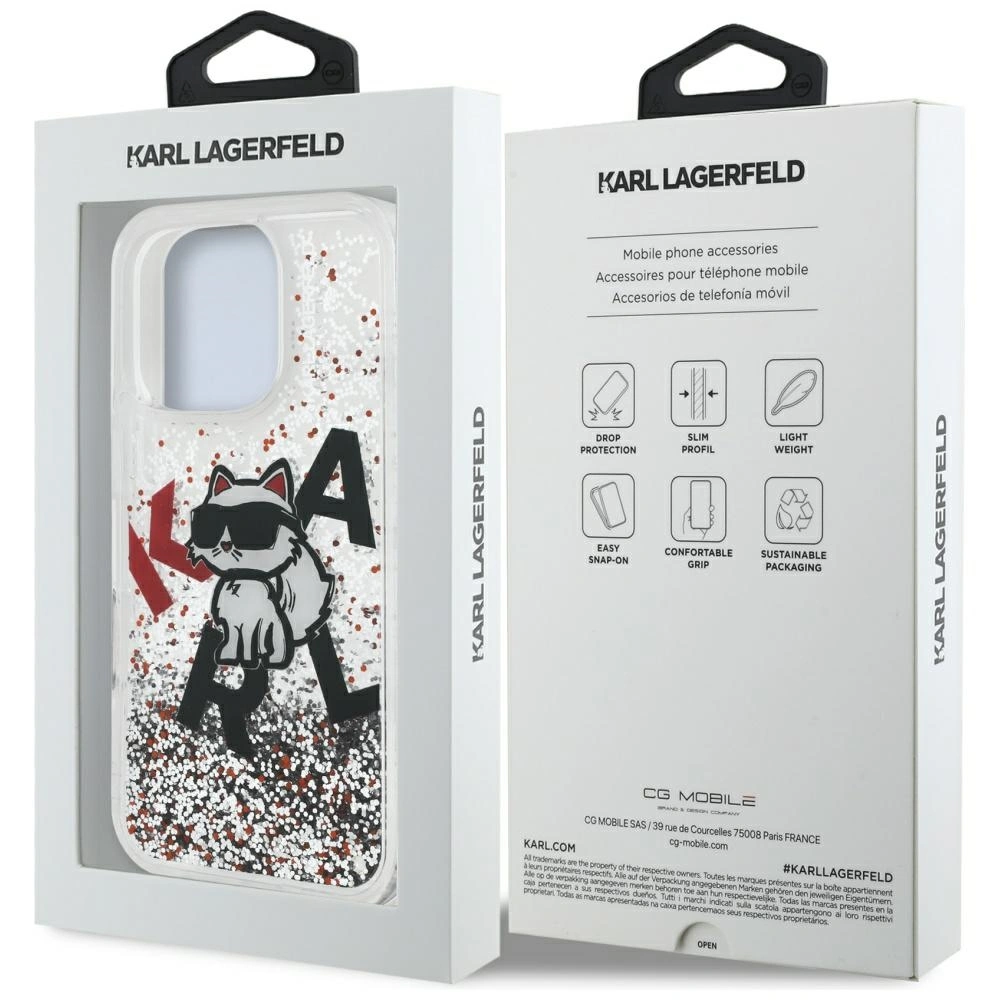 Etui wykonano z wysokiej jakości materiałów i jest nie tylko stylowe, ale także trwałe i odporne na ścieranie. Etui zostało starannie zaprojektowane, aby nie tylko chronić Twój telefon, ale także podkreślać Twój indywidualny styl. Wystarczy delikatnie wstrząsnąć telefonem wyposażonym w to etui, aby odkryć przepiękne drobinki brokatu, mieniące się w świetle. Seria ta wyróżnia się unikalną grafiką, prezentującą podobiznę słynnej kotki Choupette, oraz litery KARL.