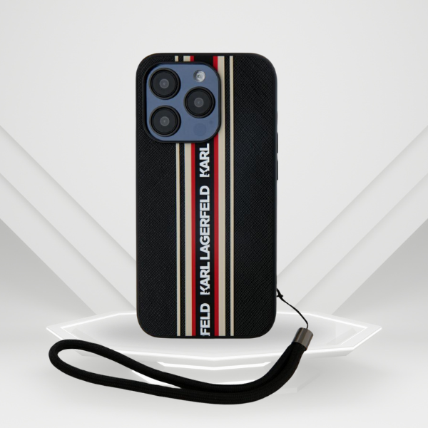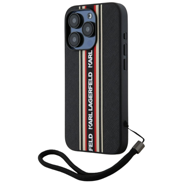 Etui Karl Lagerfeld Saffiano Athleisure Stripes Cord do Apple iPhone 15 Pro czarno-czerwony