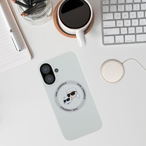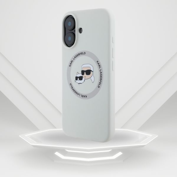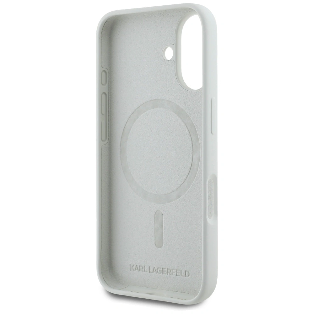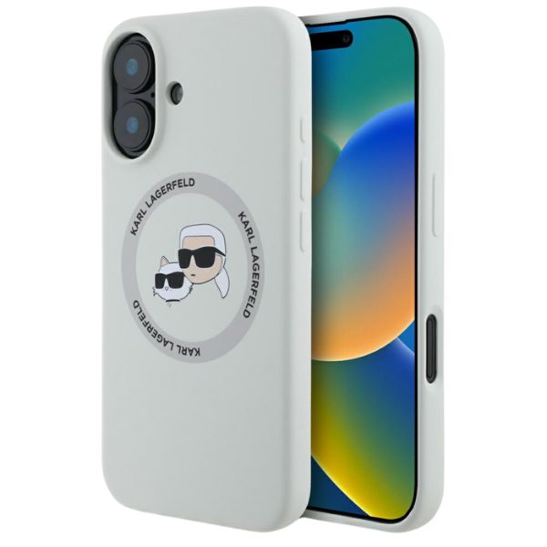 Etui Karl Lagerfeld Silicone Double Heads And Circle MagSafe do Apple iPhone 16 beżowy