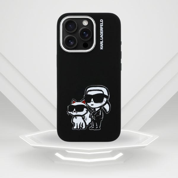 Etui wykonano z wysokiej jakości silikonu i jest nie tylko stylowe, ale także trwałe i odporne na ścieranie. Seria ta wyróżnia się unikalnym szkicem, prezentującym charakterystyczną podobiznę słynnej kotki Choupette oraz ikonicznego projektanta Karla Lagerfelda. Logo marki nie tylko dodaje elegancji pokrowcom, ale również stanowi symbol autentyczności oraz doskonałej jakości.