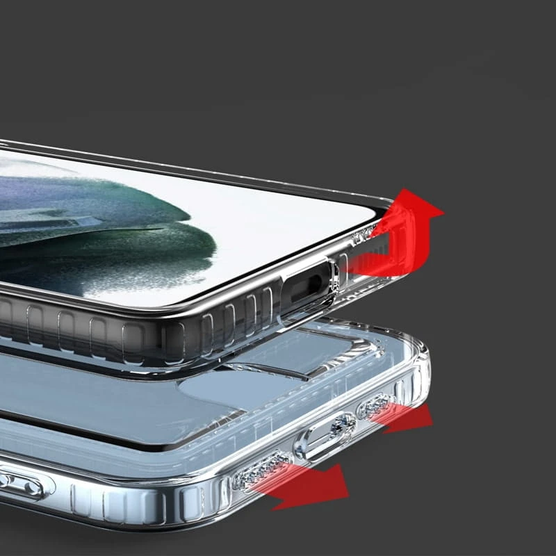 W rogach etui umieszczono specjalny element wypełniony powietrzem, który świetnie amortyzuje smartfona podczas upadku.