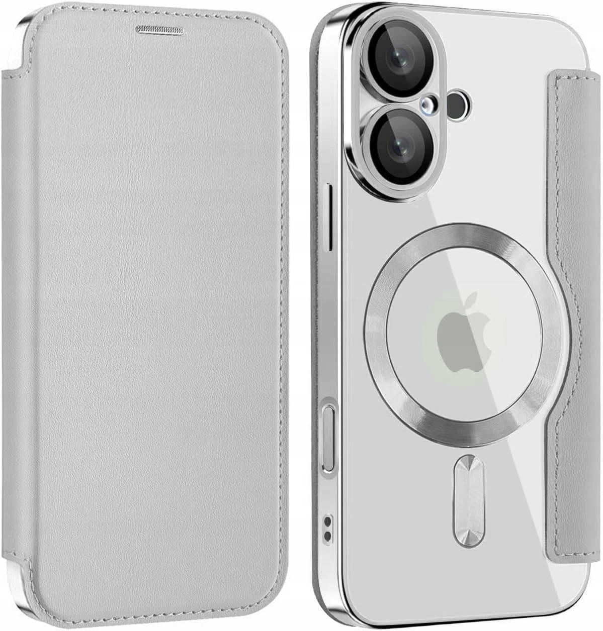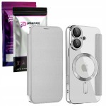 Etui Phoneo Flip z Klapką RFID do MagSafe do iPhone 16 - Srebrne