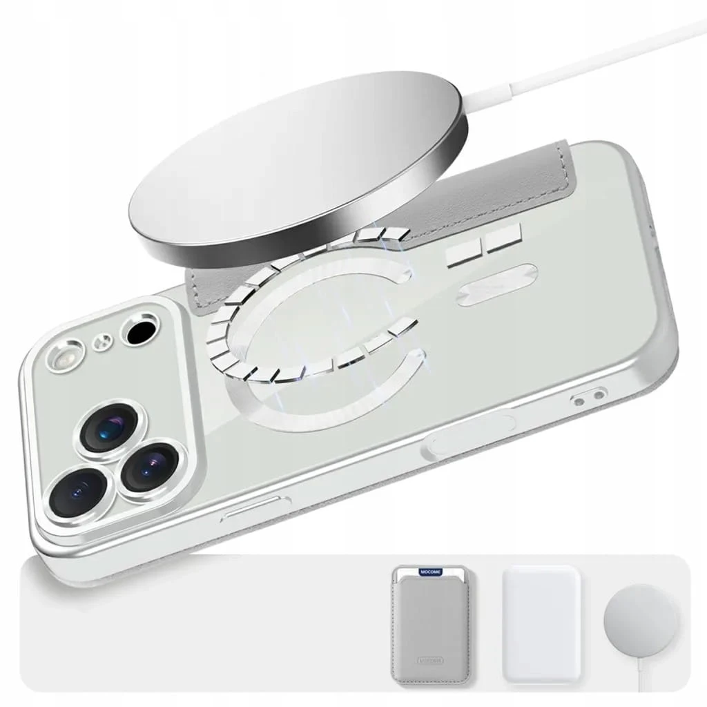 Etui Phoneo Flip z Klapką RFID do MagSafe do iPhone 17 Pro Max - Srebrne