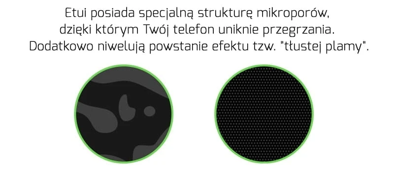 Masz wątpliwości co do konstrukcji obudowy? Nie musisz się obawiać! Dotyk jest w 100% sprawny, a dzięki strukturze mikroporów telefon nie nagrzewa się. Ciesz się najlepszą, kompleksową ochroną!