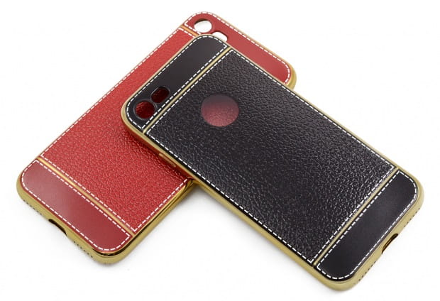 ETUI SILIKONOWE IMITUJĄCE SKÓRĘ ZE ZŁOTĄ ELEGANCKĄ RAMKĄ