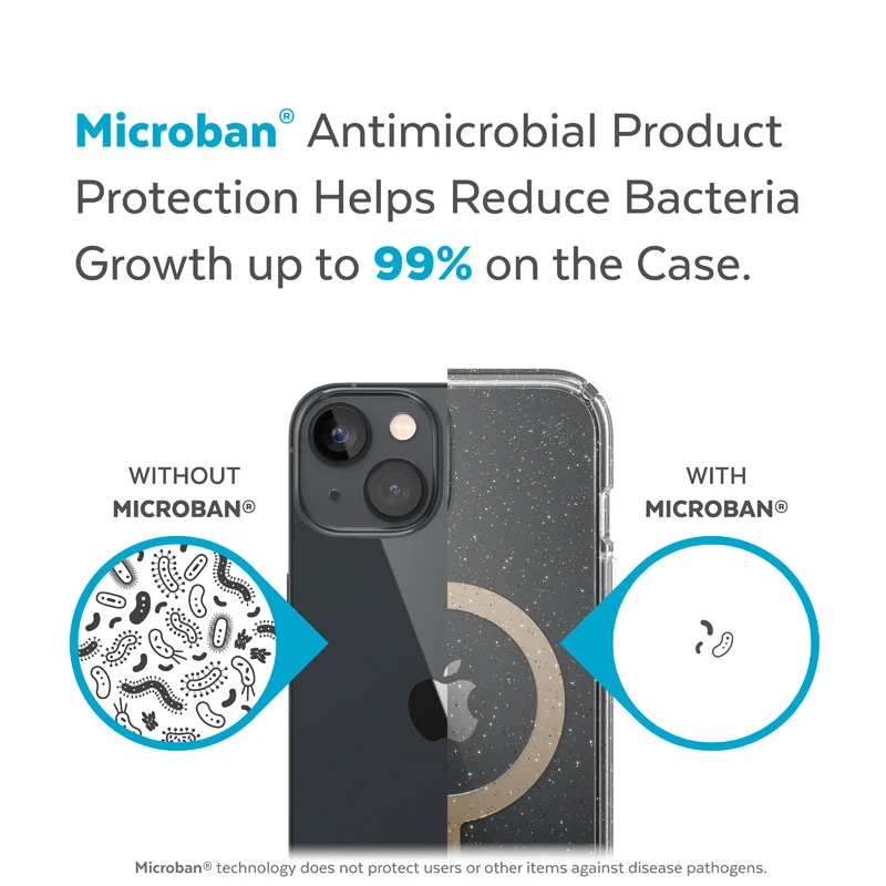 Etui Speck Presidio Perfect-Clear Glitter MagSafe MICROBAN Apple iPhone 14 Plus / 15 Plus (Clear / Gold Glitter)