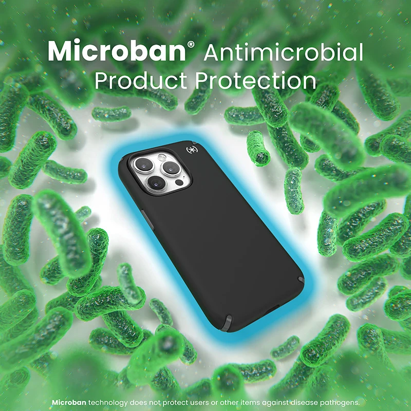 Ultra wytrzymałe etui do iPhone’a 15 Pro z MagSafe oraz ochroną antybakteryjną firmy MICROBAN® - światowego lidera rozwiązań przeciwdrobnoustrojowych z szerokim portfolio ponad 25 zatwierdzonych technologii. Aktywny składnik wbudowany w strukturę etui Presidio2 Pro powstrzymuje 99% bakterii, które gromadzą się na jego powierzchni. Technologia MICROBAN® zapewnia w ten sposób dożywotnią ochronę przed bakteriami, które powodują odbarwiania oraz nieprzyjemny zapach.