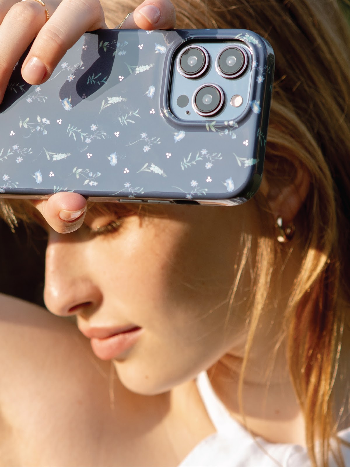 Motyw kwiatowy powstał przy pomocy technologii IML In-mould labelling(IML) - na skorupę etui naniesiono grafikę z kwiatami, po czym na grafikę naniesiono cieniutką warstę poliuretanu, dzięki czemu staje się ona odporna na ścieranie i czynniki zewnętrzne.