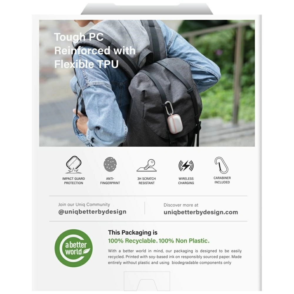 Dzięki wysokiej precyzji wykonania etui UNIQ daje poczucie bezpieczeństwa, a jednocześnie nie ogranicza funkcjonalności urządzenia, oferując łatwy dostęp do słuchawek, portów, głośników i przycisku parowania.