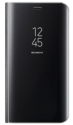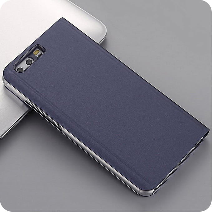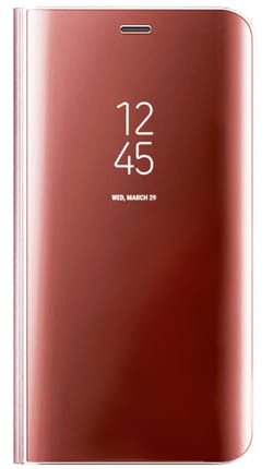 Przednia klapka wykonana jest z lustrzanego, półprzezroczystego tworzywa, pozwalającego na podejrzenie godziny bez otwierania etui. Tył etui wykonany jest z najwyższej jakości miękkiego, matowego materiału, który doskonale leży w dłoni i jest przyjemny w dotyku. Wycięcie na aparat chroni obiektyw przed uszkodzeniem w trakcie użytkowania smartfona.