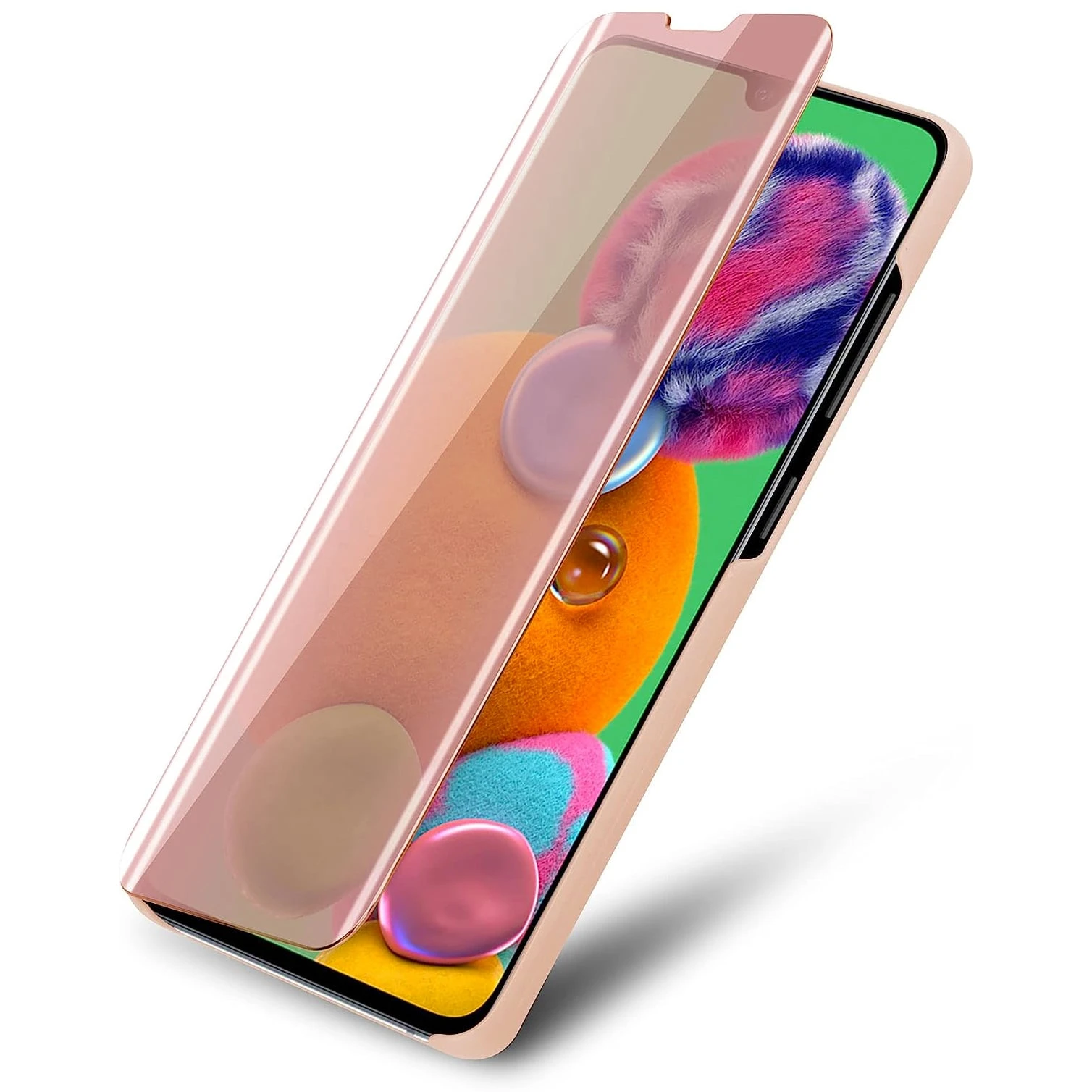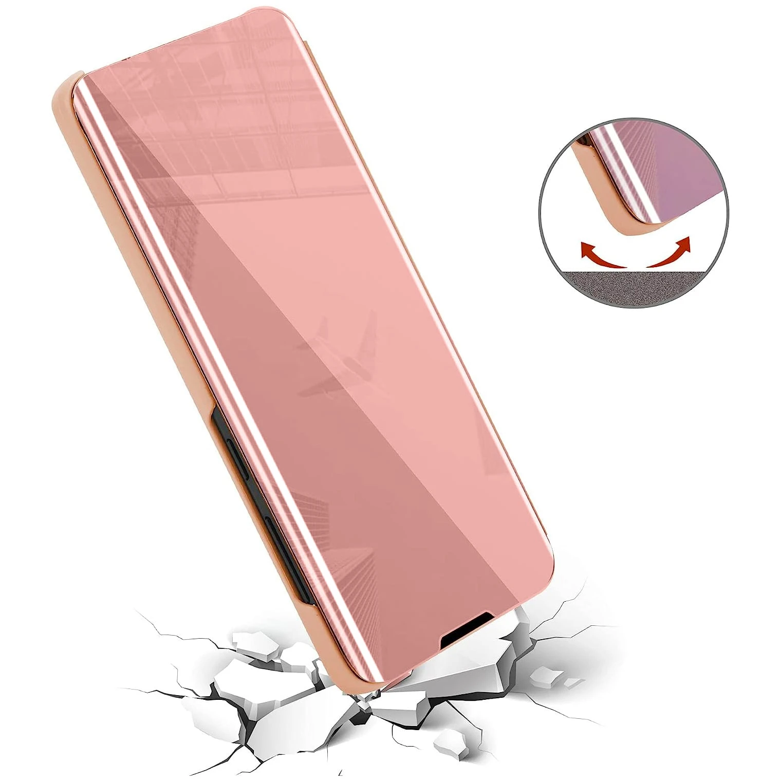 Przednia klapka wykonana jest z lustrzanego, półprzezroczystego tworzywa, pozwalającego na podejrzenie godziny bez otwierania etui. Tył etui wykonany jest z najwyższej jakości miękkiego, matowego materiału, który doskonale leży w dłoni i jest przyjemny w dotyku. Wycięcie na aparat chroni obiektyw przed uszkodzeniem w trakcie użytkowania smartfona.