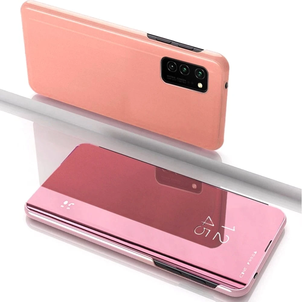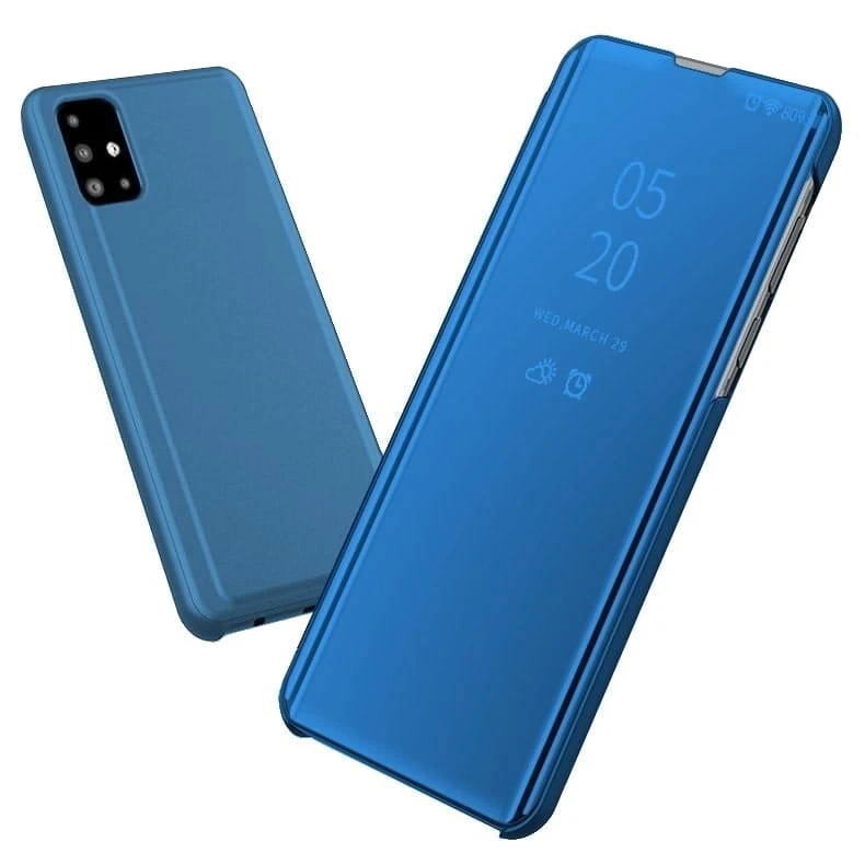 Przednia klapka wykonana jest z lustrzanego, półprzezroczystego tworzywa, pozwalającego na podejrzenie godziny bez otwierania etui. Tył etui wykonany jest z najwyższej jakości miękkiego, matowego materiału, który doskonale leży w dłoni i jest przyjemny w dotyku. Wycięcie na aparat chroni obiektyw przed uszkodzeniem w trakcie użytkowania smartfona.