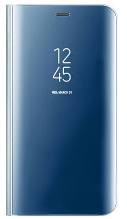 Przednia klapka wykonana jest z lustrzanego, półprzezroczystego tworzywa, pozwalającego na podejrzenie godziny bez otwierania etui. Tył etui wykonany jest z najwyższej jakości miękkiego, matowego materiału, który doskonale leży w dłoni i jest przyjemny w dotyku. Wycięcie na aparat chroni obiektyw przed uszkodzeniem w trakcie użytkowania smartfona.