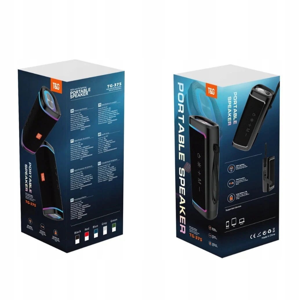 - Zawartość zestawu: Głośnik TG375, Kabel microUSB, Kabel Mini Jack 3,5mm, Instrukcja, Pudełko