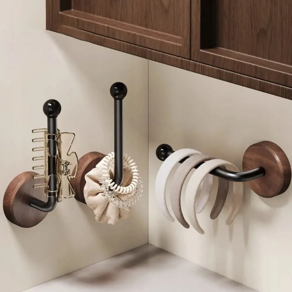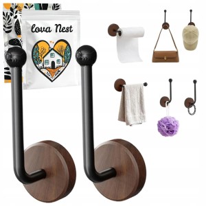 Wykonane z trwałego materiału oraz elementów drewnianych, haczyki łączą wytrzymałość z estetyką, dzięki czemu pasują do różnych stylów wnętrz - od nowoczesnych po bardziej klasyczne. Kompaktowy rozmiar oraz solidna konstrukcja zapewniają stabilność i wygodę użytkowania, a ich wszechstronność pozwala wykorzystać je w wielu pomieszczeniach, takich jak sypialnia, łazienka, przedpokój czy domowa siłownia.