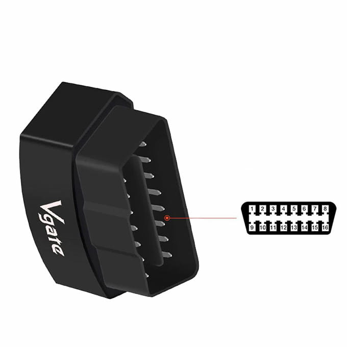 Adapter Vgate iCar3 Bluetooth to małe urządzenie podłączone do złącza OBD2 pojazdu.