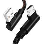 Kabel Micro USB Kątowy 90° Pleciony - 1 Metr - Czarny