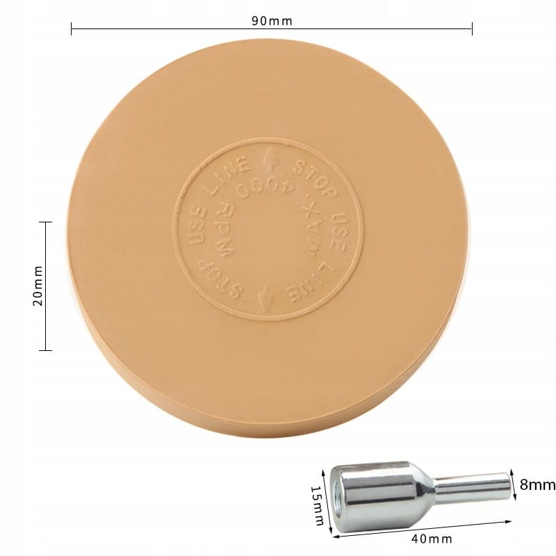 Krążek Gumowy do Czyszczenia Felg to gumowy krążek o średnicy 90 mm i grubości 20 mm z gwintem 8 mm, zaprojektowany do szybkiego usuwania resztek kleju oraz taśmy po klejonych ciężarkach.