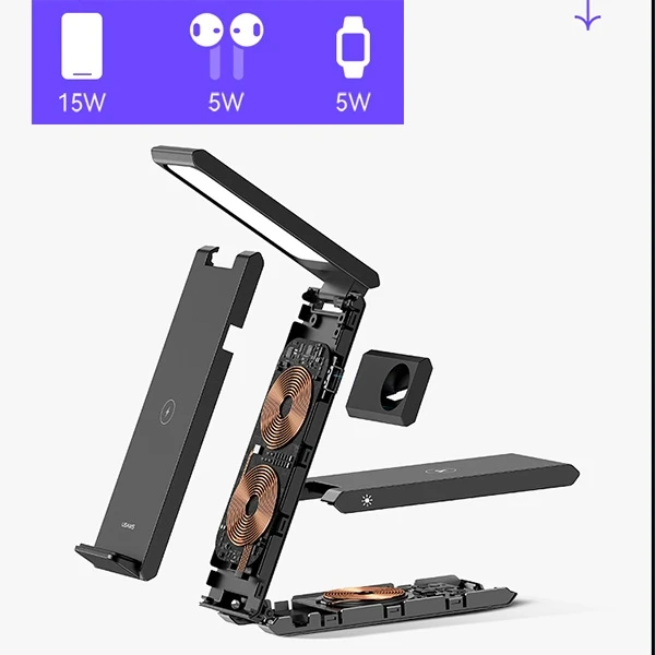 Ładowarka bezprzewodowa USAMS z lampą 3w1 15W czarny/black CD181WXC01 (US-CD181)