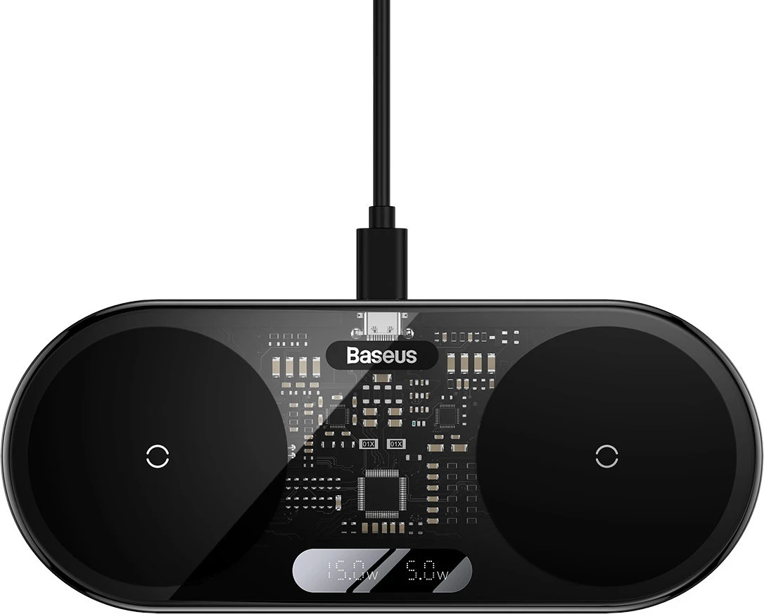 Baseus Digital LED Display podwójna ładowarka bezprzewodowa Qi z cyfrowym wyświetlaczem 20W czarny (WXSX010101)