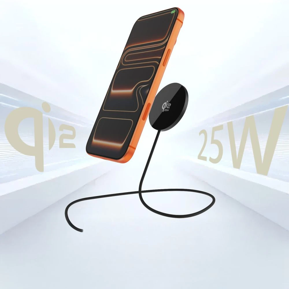 Standard Qi2.2 gwarantuje pełną kompatybilność z szeroką gamą urządzeń – smartfonami obsługującymi MagSafe, standardowe ładowanie bezprzewodowe Qi oraz modele z funkcją szybkiego ładowania 7,5W (iPhone) i 10–15W. Moc 25W dostępna jest dla urządzeń obsługujących najwyższy profil Qi2.2, co przekłada się na znacząco krótszy czas ładowania w porównaniu ze standardowymi ładowarkami bezprzewodowymi.