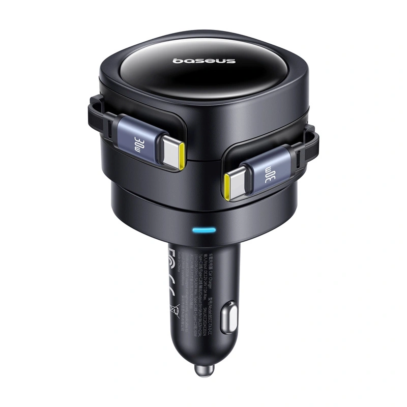 Ładowarka samochodowa Baseus z dwoma wbudowanymi kablami USB-C o łącznej mocy 60 W zapewnia szybkie ładowanie dwóch urządzeń jednocześnie i idealnie sprawdzi się zarówno dla kierowcy, jak i pasażera. Zintegrowany system bezpieczeństwa, obrotowa konstrukcja i kompatybilność z napięciem 12–24 V zapewniają niezawodność w każdym pojeździe.